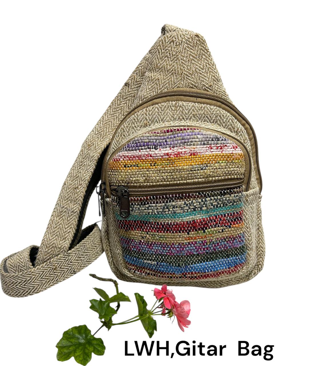This guitar bag is made from hemp-cotton & Sari fabric, making it very strong and durable. It is comfortable for travel and includes space for carrying documents such as a passport and money.”